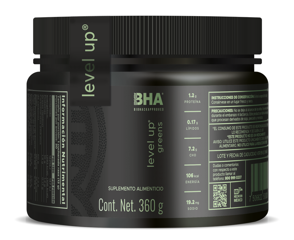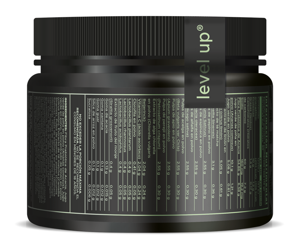 Level-Up Greens es una mezcla premium de vegetales y superalimentos que te ayudará a integrar más nutrientes en tu dieta de una manera deliciosa y conveniente. Con una fórmula rica en fibra, antioxidantes y minerales esenciales, este producto es ideal para complementar tu estilo de vida activo y saludable.
